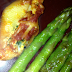 1. Cut off stems of asparagus and saute with one tablespoon olive oil and minced garlic (2 cloves) until golden brown which takes approx 5 minutes!