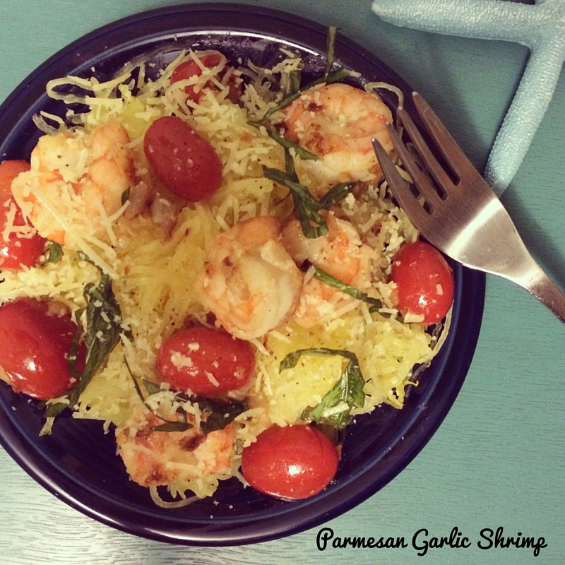Parmesan Garlic Shrimp over Spaghetti Squash